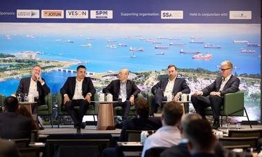 Chair Laurence Odfjell on stage at Singapore Maritime Week